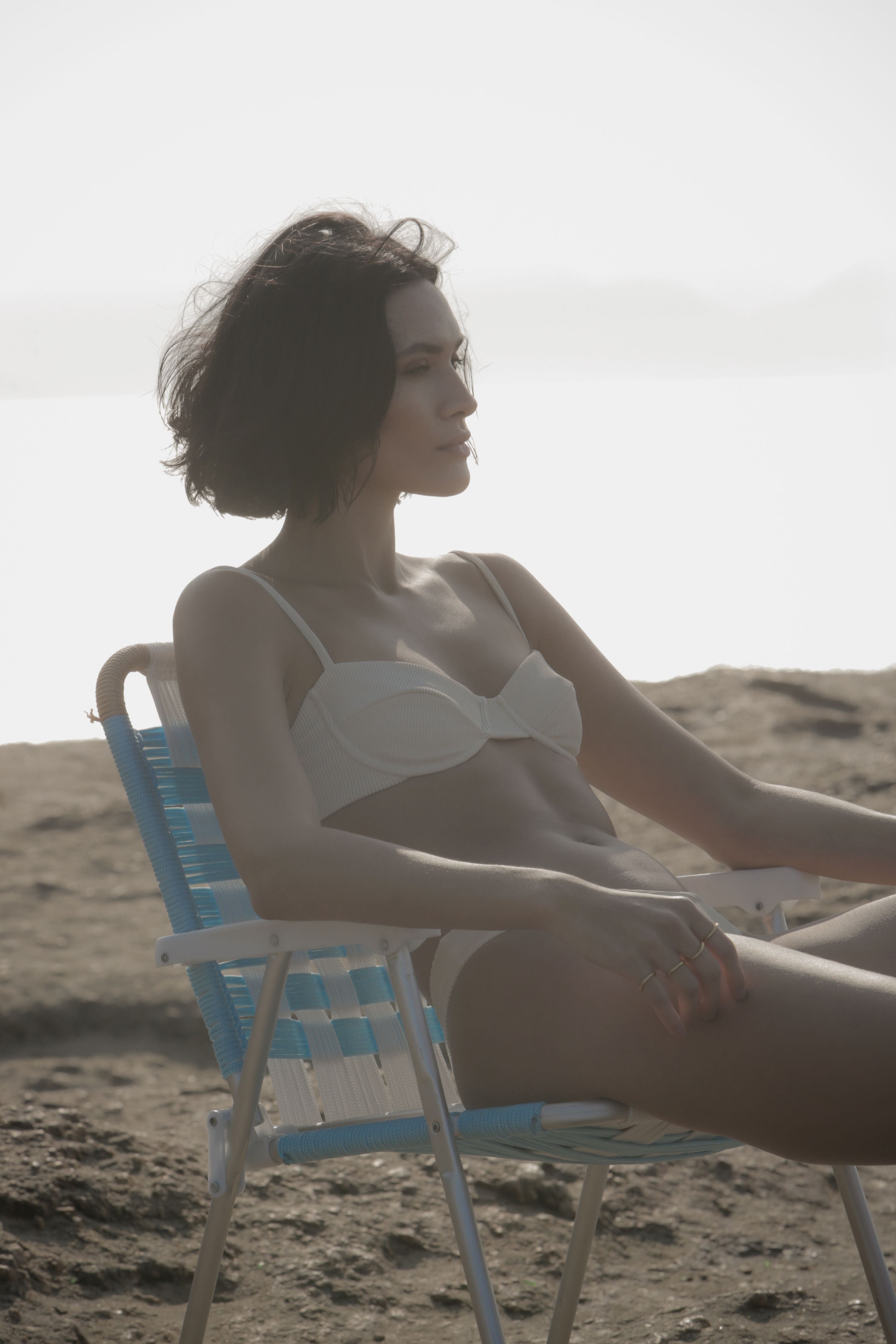 Biquini em malha de poliamida com elastano, acabamento canelado e costura embutida.